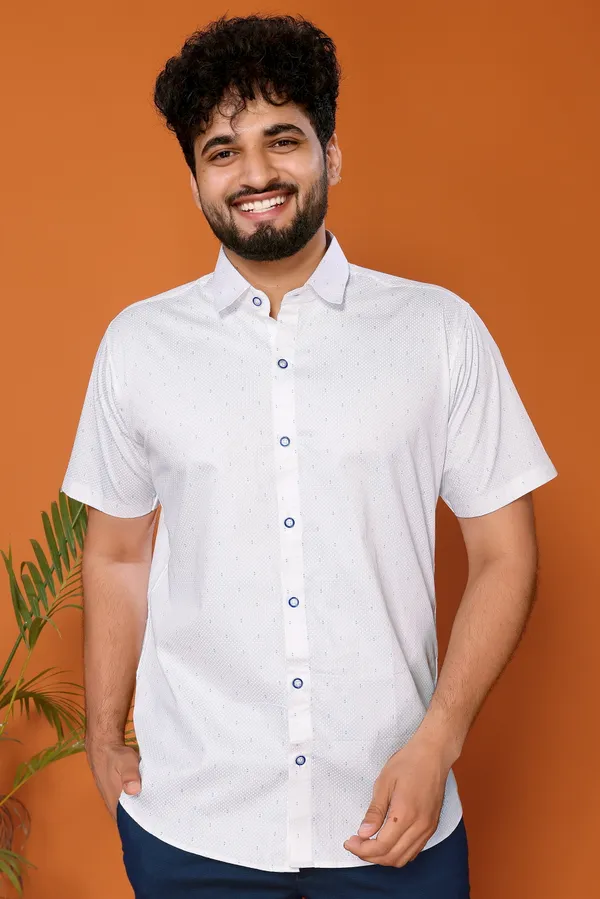 White & Blue Color Printed Shirt