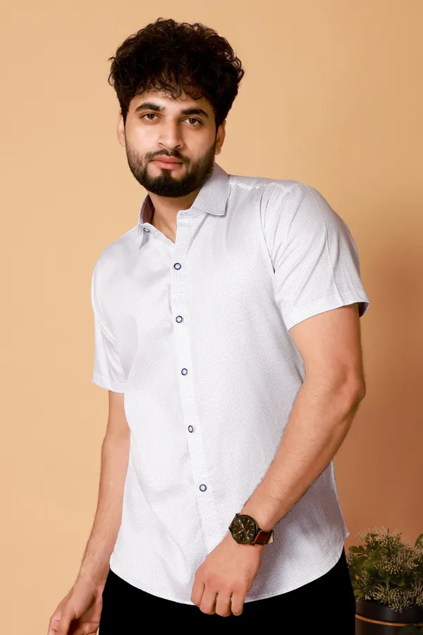 White & Blue Color Printed Shirt